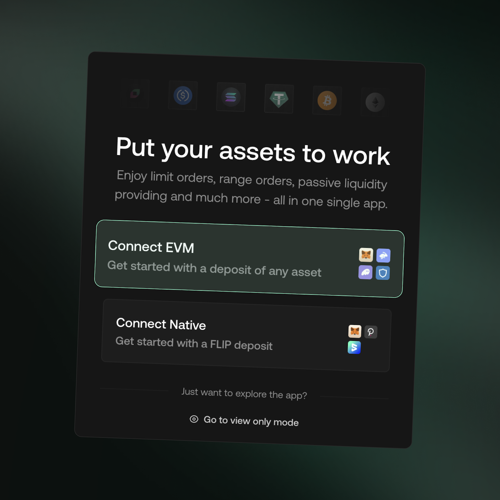 - Connect using familiar wallets such as MetaMask, Phantom, Rabby, and Rainbow